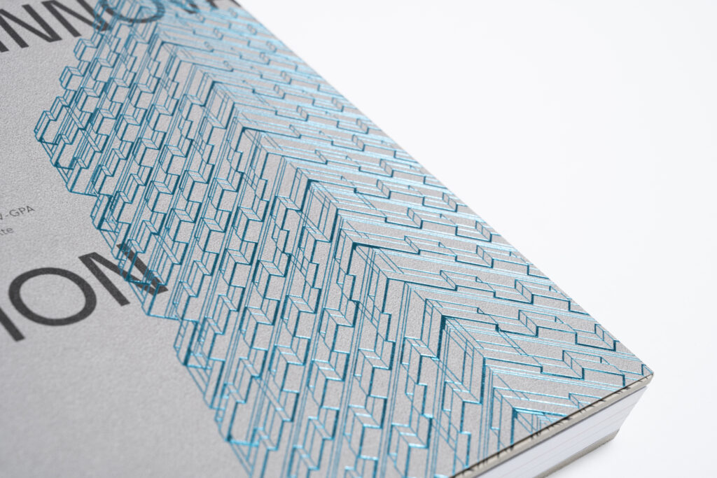 Die optische und haptische Betonanmutung des Umschlagpapiers »Gmund Urban Cement« wurde durch die Wiederverwendung von echtem Steinstaub aus Österreich